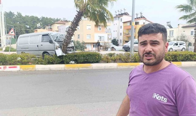 Manavgat'ta kamyonet palmiyeye çarptı: 1 yaralı