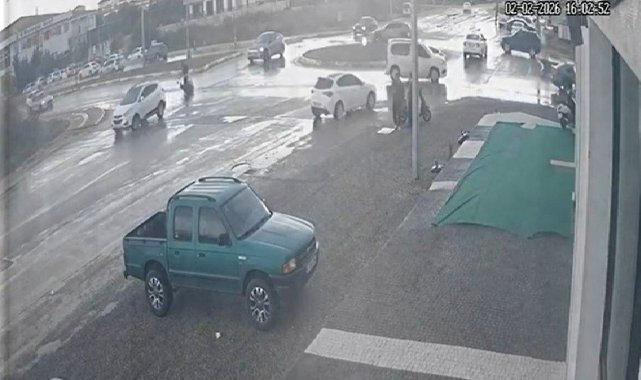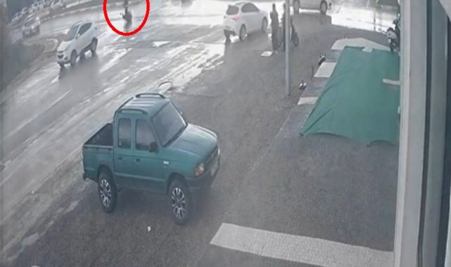 Kaza anı ise bir iş yerinin güvenlik kamerasına yansıdı.
