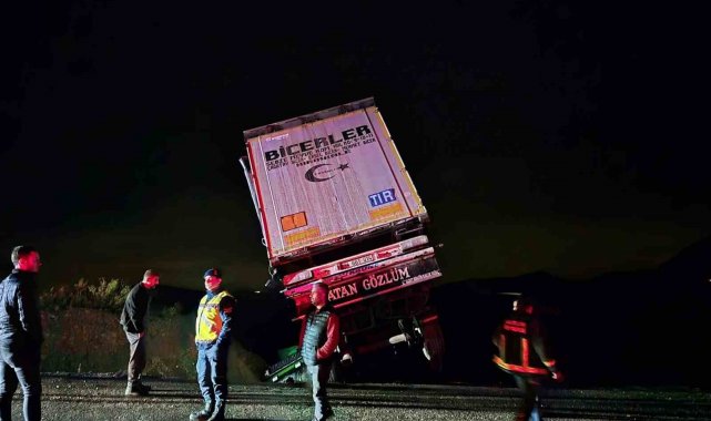 Kaza, geçtiğimiz gün Manavgat ilçesi Antalya-Konya D-687 kara yolu Beydiğin Mahallesi yakınlarında meydana geldi. Edinilen bilgiye göre, Antalya yönüne seyreden Mustafa U.'nun kullandığı 71 ADL185 plakalı tır, Demirkapı Tünel çıkışında sürücüsünün direksiyon hakimiyetini kaybetmesi sonucu şarampole devrildi. Kazayı gören diğer sürücülerin 112 Acil Çağrı Merkezi'ne ihbarı ile olay yerine jandarma, itfaiye ve AFAD ekipleri sevk edildi.