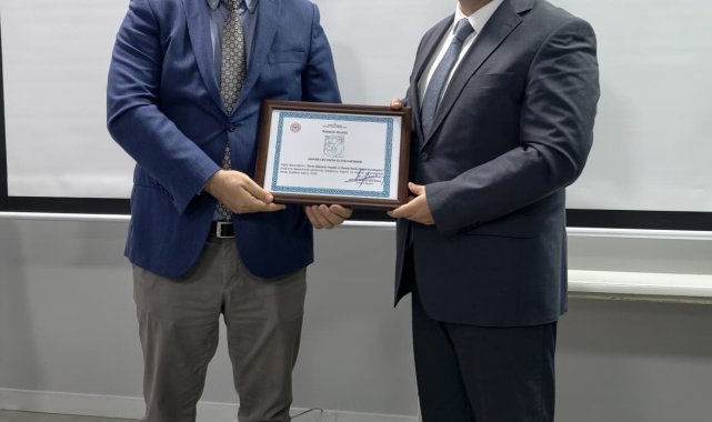 Konuşmaların ardından İl Sağlık Müdürü Uzm. Dr. Fatih Zeren, teşekkür belgesini Başhekim Prof. Dr. İsmet Topçu'ya takdim etti.