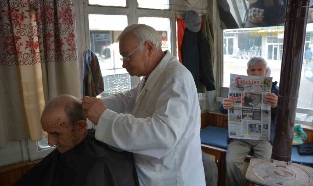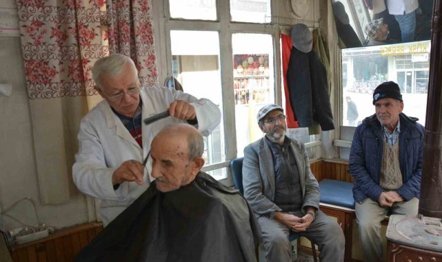 Manisa'nın Demirci ilçesinde berber Hasan Erşahin ilerlemiş yaşına rağmen 12 yaşında başladığı berberlik mesleğini 57 yıldır sürdürüyor.