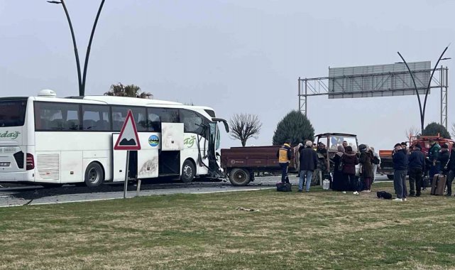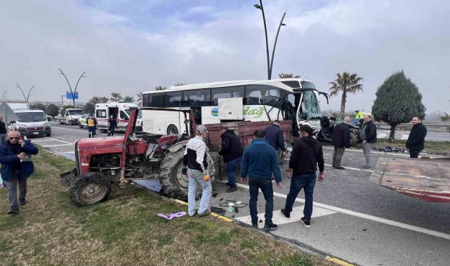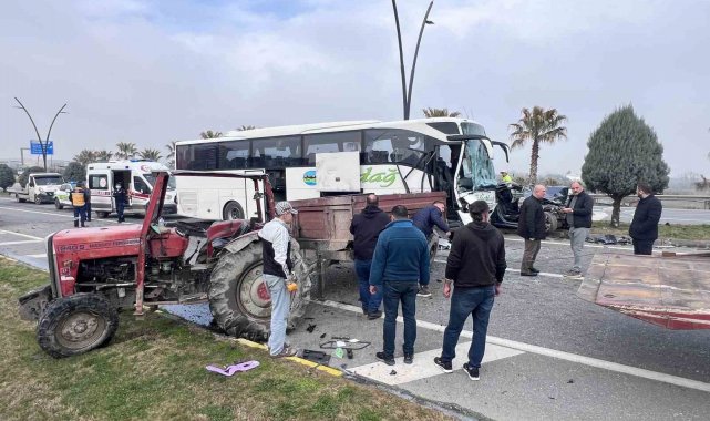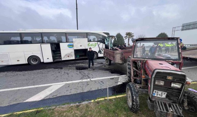 Kaza, saat 11.30 sıralarında İzmir-Manisa çevre yolu Saat Kulesi kavşağı Menemen Köprüsü girişinde meydana geldi. Edinilen bilgiye göre Batı Çevre Yolu'nda Akhisar yönüne seyreden D.K. (72) idaresindeki 16 AFP 130 plakalı otomobil, aynı yönde sağ şeritte ilerleyen M.Y. (48) yönetimindeki 45 ET 318 plakalı asfalt atığı yüklü traktöre çarptı. Çarpmanın etkisiyle savrularak sol şeride geçen otomobile, İ.E. (52) idaresindeki 10 HF 160 plakalı Uludağ firmasına ait İzmir-İstanbul seferini yapan yolcu otobüs çarptı. Zincirleme kazada araçlarda ağır hasar meydana gelirken ihbar üzerine bölgeye çok sayıda ambulans polis ve itfaiye ekibi sevk edildi. Kazada traktör sürücüsü M.Y., otomobil sürücüsü D.K., otomobilde yolcu olarak bulunan N.K., otobüste görevli muavinler E.B. (20) ve K.Ş. (26) yaralandı. Yaralılar ambulansla hastanelere kaldırılarak tedavi altına alındı. Otobüste kazadan yara almadan kurtulan 11 yolcu ise başka bir otobüse bindirilerek yolculuklarına devam etti.