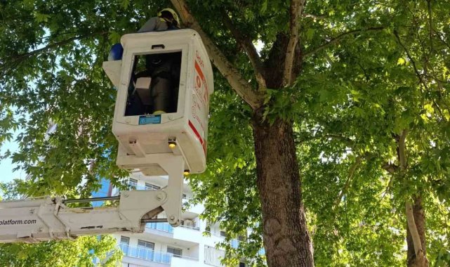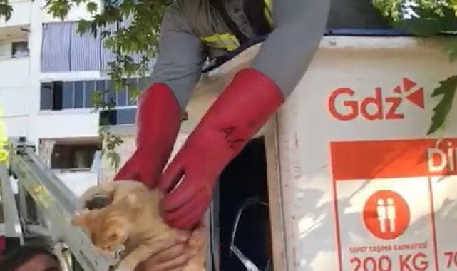 Manisa'da ağaçta mahsur kalan kedi kurtarıldı