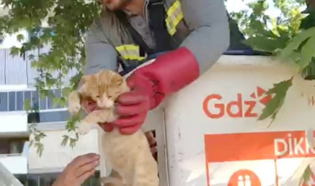 Manisa'nın Salihli ilçesinde tırmandığı ağaçta mahsur kalan kediyi yoldan geçmekte olan GDZ Elektrik ekipleri kurtardı.