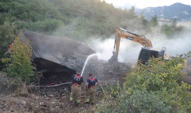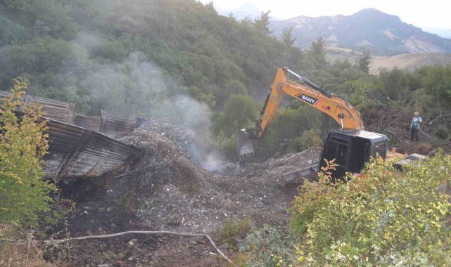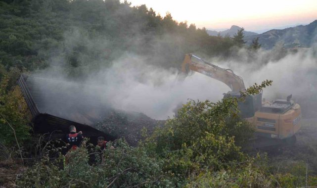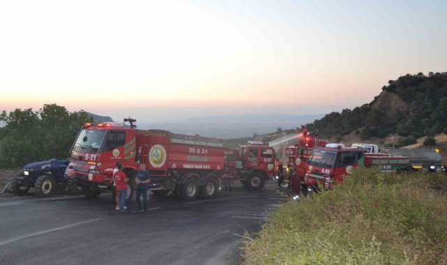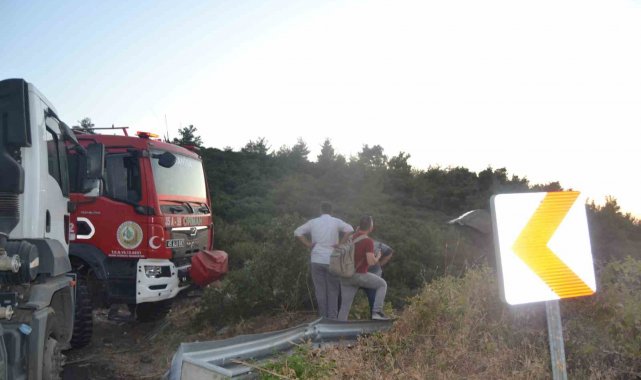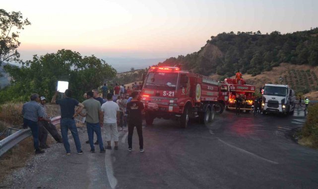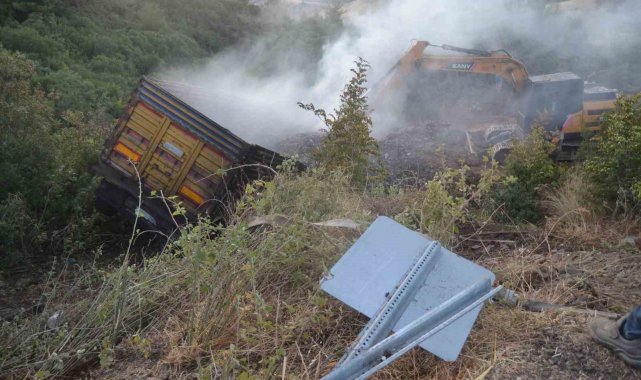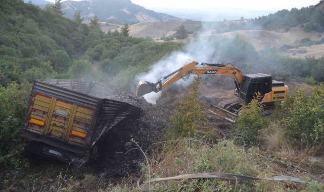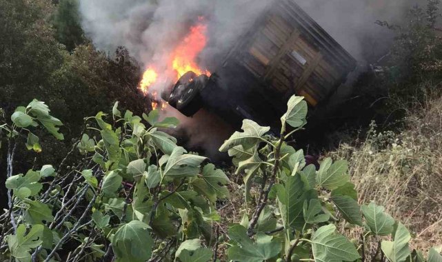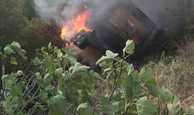 Manisa'da alev alan kamyon şarampole uçtu, yangın ormana sıçramadan söndürüldü