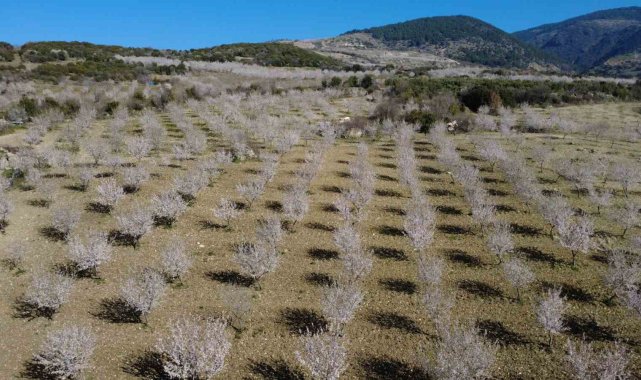 İlçede toplam 3 bin 500 dekar arazide gerçekleştirilen profesyonel badem yetiştiriciliği meyvelerini vermeye devam ediyor.