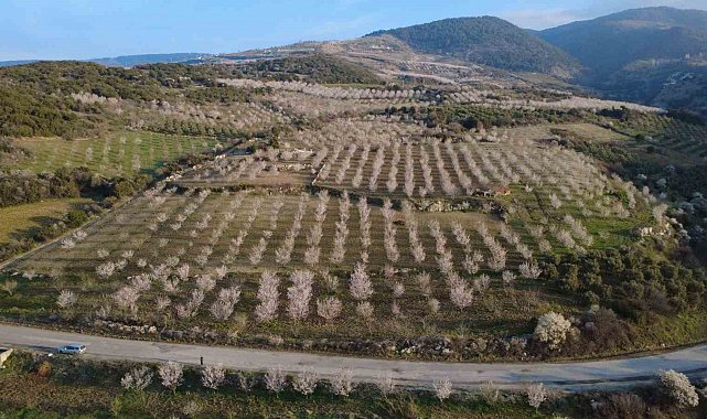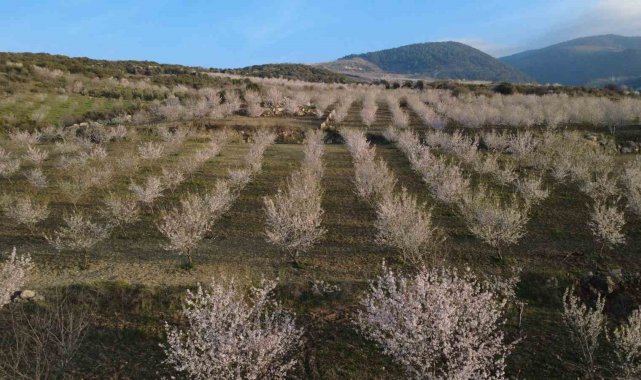 Manisa'da badem ağaçları çiçeklerle bezendi