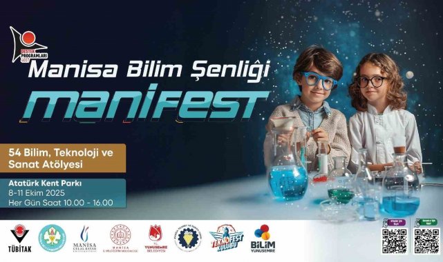 Manisa'nın Yunusemre ilçesinde, "MANİFEST-Bilim ile Manisa'yı Aydınlat, Geleceği Şekillendir" temalı bilim şenliği, 8-11 Ekim 2025 tarihleri arasında Atatürk Kent Parkı'nda gerçekleştirilecek. 54 atölye ile öğrenciler ve gençler bilimin eğlenceli dünyasıyla buluşacak.