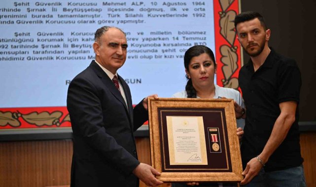 Vali Özkan, "Bugünkü törende, Cumhurbaşkanımız adına, memleketin birliği ve bütünlüğü için en büyük fedakârlığı yapmış şehit yakınlarımıza ve gazilerimize, milletimizin teveccühünün, minnettarlığının ve duasının ifadesi olan madalyayı ve beratı takdim edeceğiz. Rabbim, bizleri şehitlerimizin şefaatinden istifade edenlerden eylesin. Bizleri, gazilik ve şehitlik kurumunun maneviyatını kaybetmeyen, o hissiyatı her zaman içinde taşıyanlardan eylesin" diye konuştu.