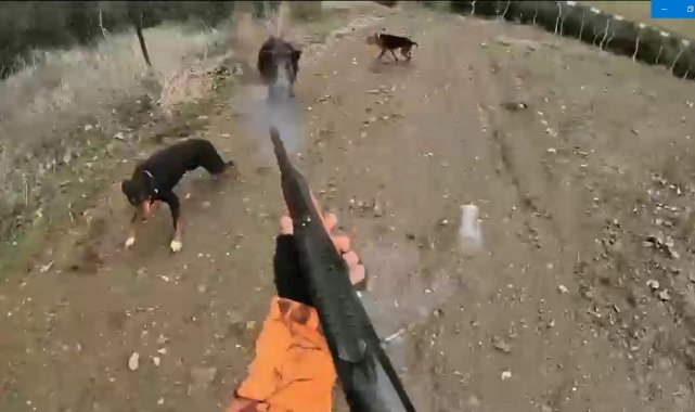Manisa'nın Salihli ilçesinde avlanan bir kişiye yaban domuzu saldırdı. Saldırı anı avcı tarafından anbean görüntülendi.