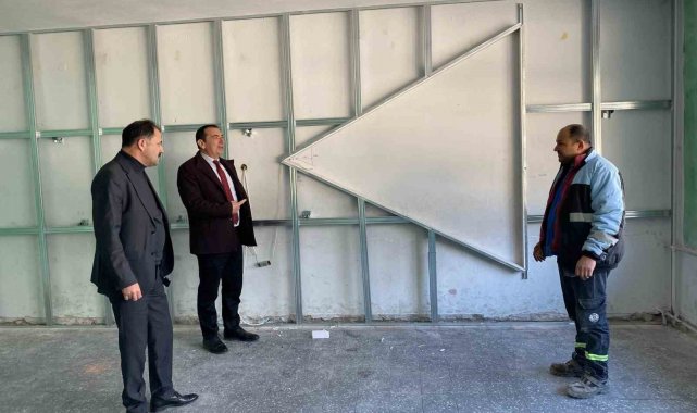 Belediye Başkanı Erkan Kara ve Başkan Yardımcısı İsmail Hakkı Gül'de Bilim Demirci binasına giderek inşaat ve düzenleme yerinde takip ederek çalışmalar ile ilgili bilgi aldılar.