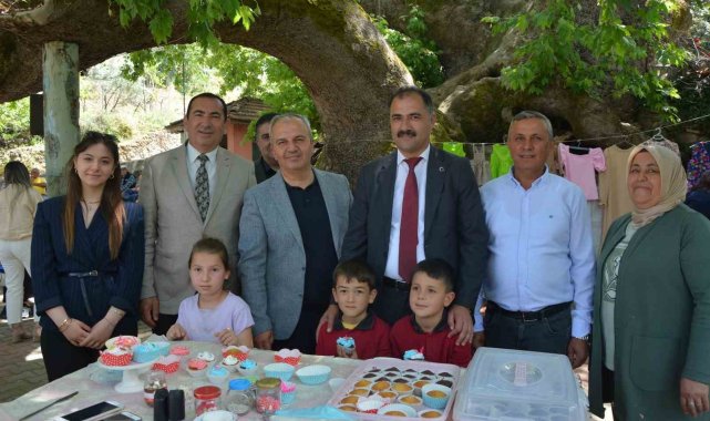 Manisa'nın Demirci ilçesinde halk eğitim merkezi kursiyerlerinin yıl boyunca hazırladığı el emeği ürünler, 2 bin yıllık tarihi çınarın gölgesinde sergilendi.