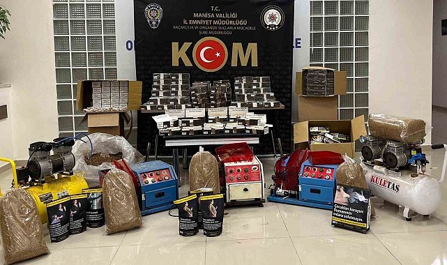 KOM Başkanlığı koordinesinde gerçekleştirilen operasyonda, il merkezinde 1, Turgutlu'da 1, Kula'da 2, Akhisar'da 2 ve Salihli'de 2 olmak üzere toplam 8 adrese baskın yapıldı. Yapılan aramalarda, 2 kompresör makinesi, 5 sigara sarma makinesi, 337,5 kilo kıyılmış tütün, 75 bin 360 adet içi tütün doldurulmuş makaron, 83 bin 800 adet boş makaron ve 51 elektronik sigara ele geçirildi.