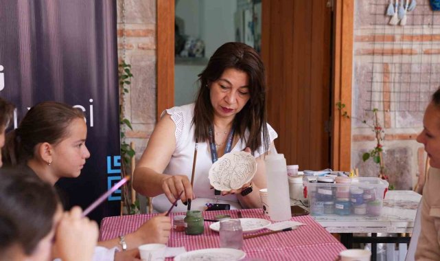 Kurşunlu Han'da, Cansel Çakır eğitmenliğinde gerçekleşen Çini Atölyesi'nde çocuklar geleneksel sanatla tanışarak, el becerilerini geliştirdi.