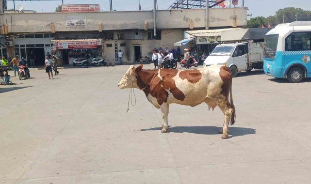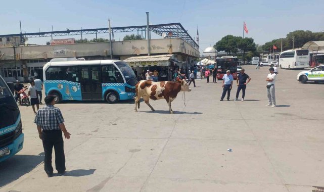 Manisa'nın Salihli ilçesinde kesim için getirildiği mezbahadan kaçan inek ortalığı birbirine kattı. Firari inek, otogarda yakalandı.
