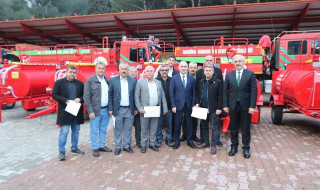 Toplantının ardından Yangın Risk Azaltma Eylem Planı kapsamında, Yatırım İzleme ve Koordinasyon Başkanlığı (YİKOB) tarafından temin edilen 40 adet su tankeri, yaz ayları öncesinde kırsal mahallelerde görev yapan muhtarlara teslim edildi.
