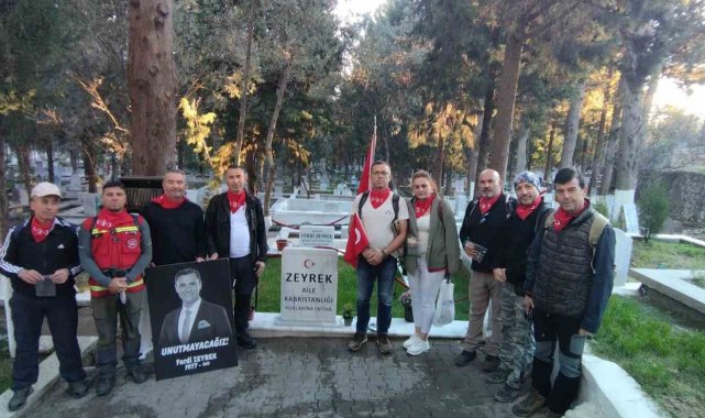 Manisa'da Anemon Trekking Spor Kulübü ve Manisa Büyükşehir Belediyesi iş birliğiyle Ferdi Zeyrek ve şehitler anısına gerçekleştirilen tırmanışta dağcılar, mezarlardan aldıkları toprakları Spil Zirvesi'ne taşıdı.