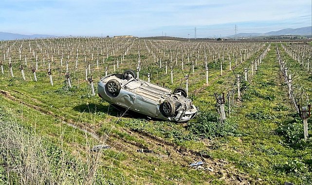 Manisa'da takla atan otomobil, üzüm bağına uçtu