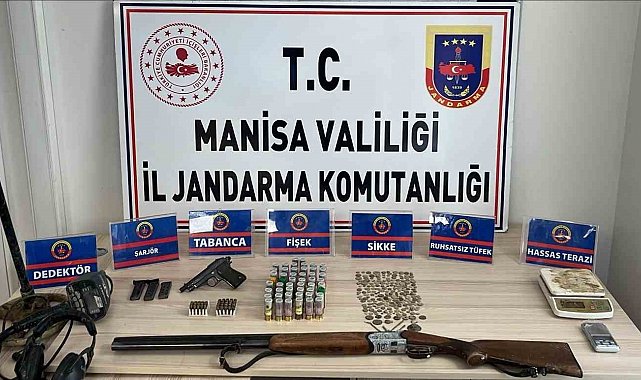 Manisa'nın Salihli ilçesinde jandarma ekiplerince düzenlenen operasyonda çok sayıda tarihi eser, ruhsatsız silah ve dedektör ele geçirildi.