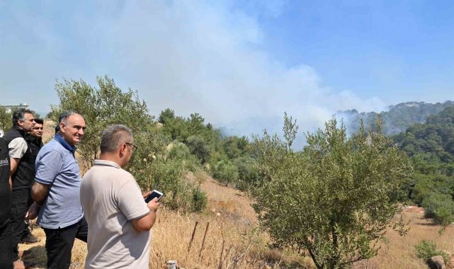 Manisa Valisi Vahdettin Özkan, Ahmetli ilçesine bağlı Dereköy Mahallesi'nde dün başlayan ve ormanlık alana sıçrayan yangına yönelik yürütülen söndürme çalışmalarını yerinde inceledi.