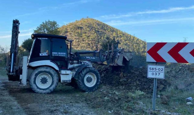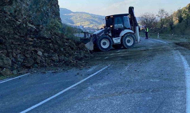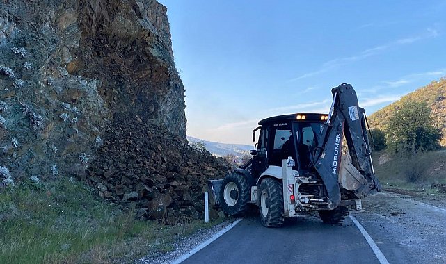 Demirci Belediyesine ait kepçe ve Karayolları ekipleri tarafından yoldaki kayalar ve topraklar temizlenerek trafiğe açıldı.