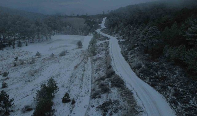 Manisa'nın yüksek kesimlerinde kartpostallık kar manzaraları
