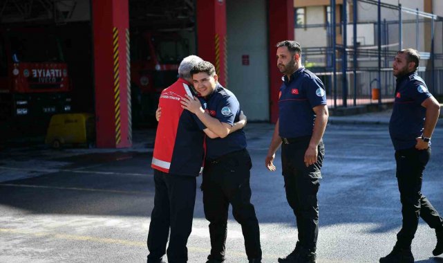 İtfaiye erlerini kucaklayarak karşılayan Büyükşehir Belediyesi Genel Sekreter Yardımcısı Mustafa Türkmen ve İtfaiye Daire Başkanı Mustafa Metin Kızılkan itfaiye erlerine Manisa ve İzmir bölgelerindeki yangınlarda ortaya koydukları fedakâr ve özverili çalışmalarından dolayı teşekkür etti.