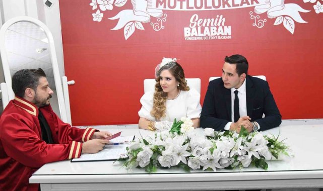 Yunusemre Belediyesi Evlendirme Memurluğuna başvuruda bulunan 15 çift, mutluluklarını taçlandırarak hayatlarını birleştirdi. Evliliklerini özel bir günde gerçekleştirmek isteyen çiftler, bu tarihi aylar öncesinden seçtiklerini belirtti. Unutulmaz bir başlangıç yapmak adına 05.05.2025 tarihini seçen çiftler unutulmaz tarihte mutluluklarını paylaştı. Yunusemre Belediye Başkanı Semih Balaban, hayatını birleştiren çiftleri kutlayarak, "Böylesine özel bir tarih bularak hayatını birleştiren çiftlerimize mutluluklar diliyorum. Değerli çiftlerimize ömür boyu sağlık, huzur ve sevgi dolu bir hayat sürmelerini diliyorum." dedi.