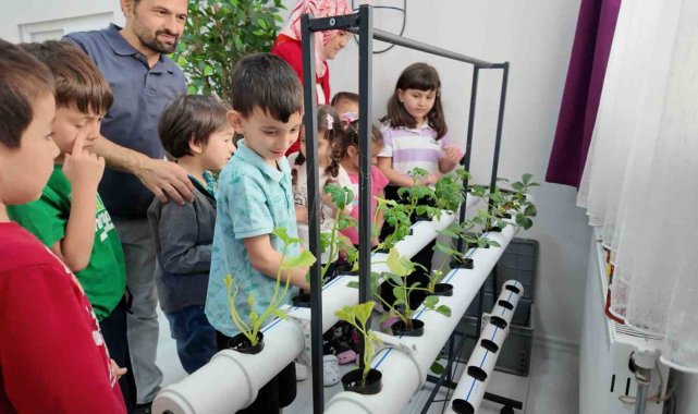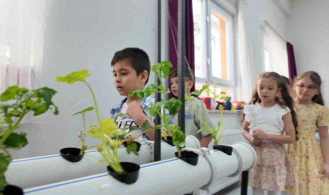 Manisa'nın Yunusemre ilçesindeki Türk Kızılay İlkokulu bünyesinde bulunan ana sınıfı öğrencileri hidroponik (topraksız sulu tarım) tarımla ürün yetiştiriyor. Öğrenciler ürünlerin dikiminden hasadına kadar bütün süreci hem yakından izliyor hem de üretim bilinci ile erken yaşlarda buluşuyor. Küçük yaşta tarımsal bilinç kazanan minikler aynı zamanda sabır, sorumluluk gibi erdemlerle de yaşamlarına yön veriyor.