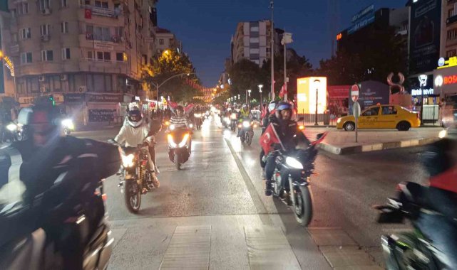 Korteje katılan 350'ye yakın motosikletli ellerinde Türk bayraklarıyla şehir turu atarken, vatandaşlar da alkışlarıyla kortejdekilere destek verdi.