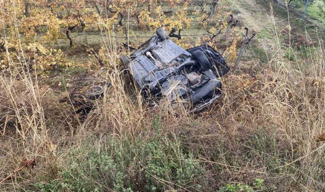 Manisa'nın Alaşehir ilçesinde sürücüsünün yağış nedeniyle kayganlaşan yolda direksiyon hakimiyetini kaybettiği otomobil, üzüm bağına devrildi. Ters dönen otomobilde bulunan 2 kardeş yaralandı.