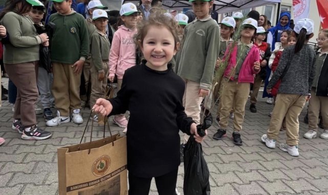 Manyas'ta Orman Haftası'nda fidanlar öğrencilere dağıtıldı