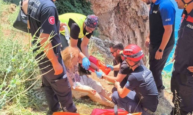 Manzara izlemek için falezlere inmek isteyen kadın turist ölümden döndü