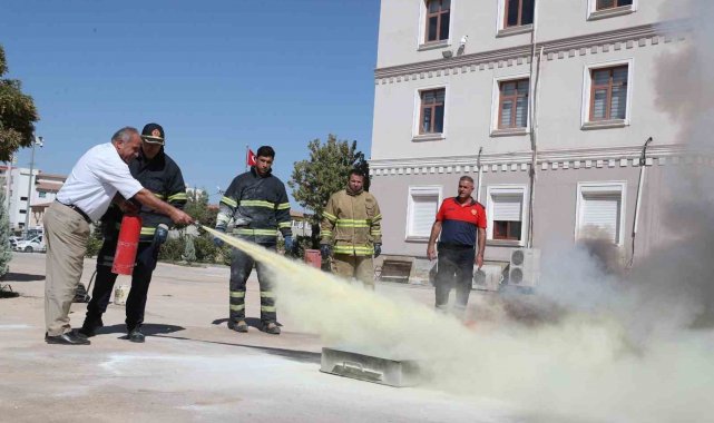 Mardin Büyükşehir Belediyesi İtfaiye Daire Başkanlığı, kamu kurum kuruluşlarındaki personele yangın eğitimi veriyor.