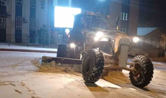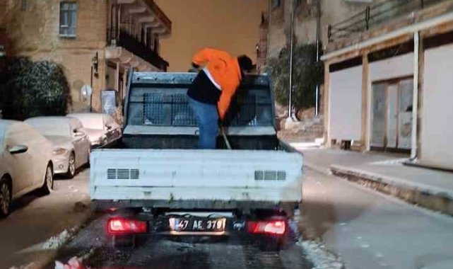 Mardin'de gece yarısından sonra etkisini artıran kar yağışı nedeniyle Büyükşehir Belediyesi ekipleri tarafından ana arterlerde küreme, tuzlama ve solüsyon çalışmaları yürütüldü.