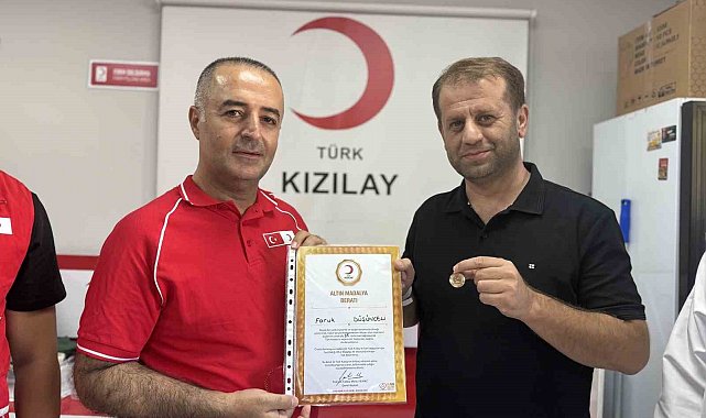 Kan bağışı sonrası Düşünceli'ye Kızılay tarafından altın kaplama madalya takdim edildi.