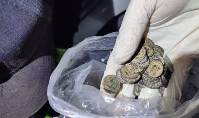 Şüphelilerin kullandığı araçta yapılan aramada farklı dönemlere ait 4 bin 897 sikke bulundu. Ele geçirilen sikkelere el konulurken, 2 şüpheli hakkında adli işlem başlatıldı.