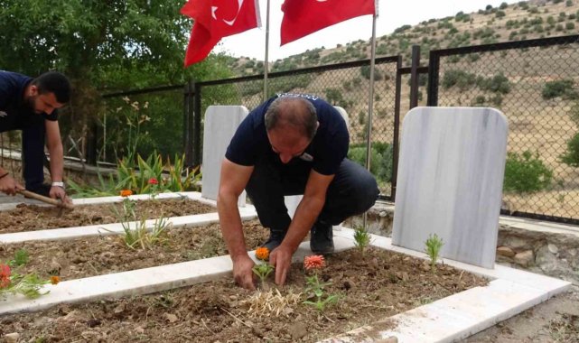 Mardin'de Kurban Bayramı öncesi şehit kabirlerine bakım yapıldı.