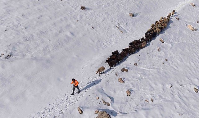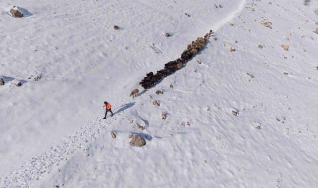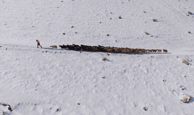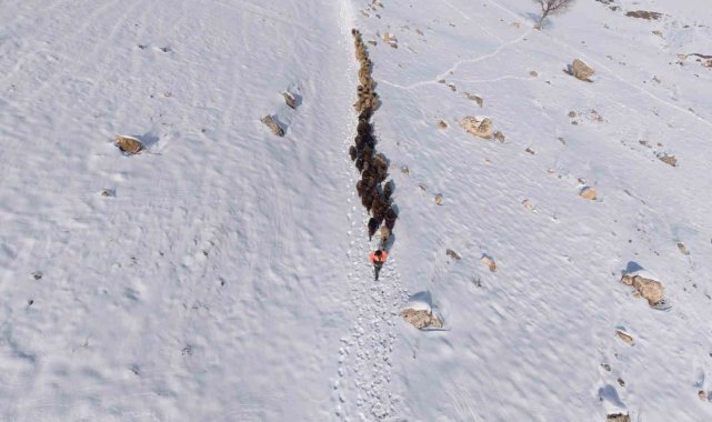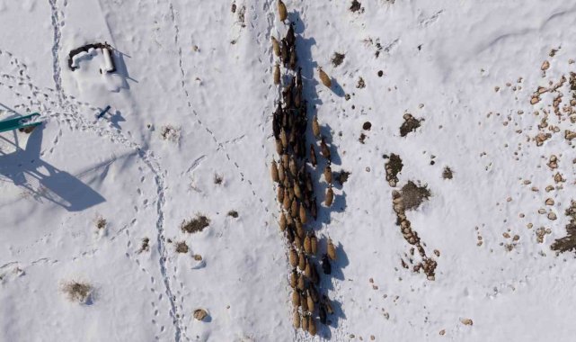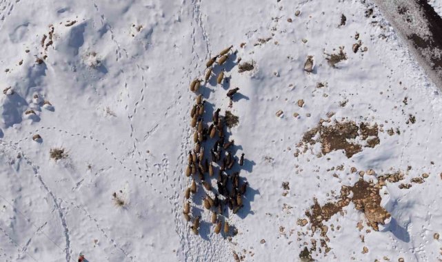 İlçe genelini beyaza bürüyen kar yağışı sonrası, kırsal mahallelerde yaşayan çiftçiler hayvanlarını beslemek için yoğun çaba sarf ediyor. Kış şartlarının ağırlaştığı bölgede, yemleme maliyetlerini düşürmek ve hayvanların hava almasını sağlamak isteyen çobanlar, karla kaplı arazilerin yolunu tutuyor. Mazıdağı kırsalında sürüsünü otlatmaya çıkaran bir çobanın eve dönüş yolculuğu havadan görüntülendi. Karla kaplı tepelerde, hayvanların oluşturduğu patika izinden ilerleyen çoban ve sürüsünün görüntüsü, bölgedeki kış şartlarının zorluğunu gözler önüne serdi. Soğuk havaya ve engebeli araziye rağmen ekmek parası için mücadele veren üreticiler, gün batımına doğru ağıllarının yolunu tutuyor.