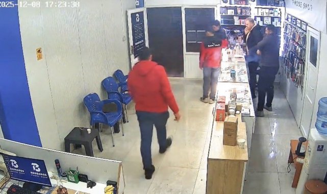 Mardin'in Midyat ilçesinde bir vatandaşın tamir için dükkana götürdüğü cep telefonu aniden alev alarak paniğe neden oldu. O anlar iş yerinin güvenlik kamerasına yansıdı.