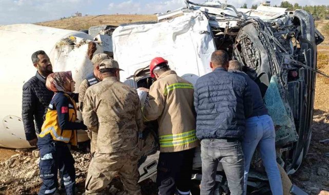 Mardin'de kontrolden çıkarak devrilen beton mikserinin sürücüsü yaralandı.