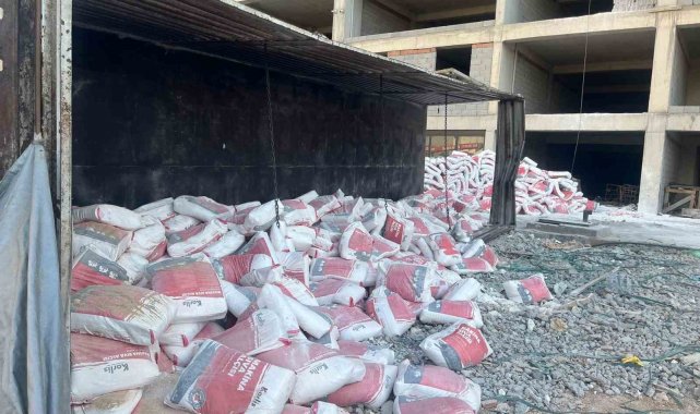 Tırda yüklü olan alçı torbaları yol kenarına savrulurken, polis ekipleri kaza ile ilgili inceleme başlattı.