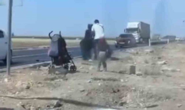 Mardin'de dilenci kadınların yol ortasındaki kavgası kameralara yansıdı.