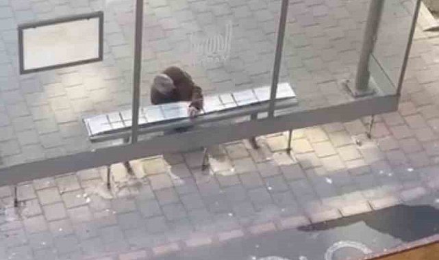 Mardin'in Midyat ilçesinde bir vatandaş, soğuk havalarda toplu taşıma durağında bekleyenlerin üşümemesi için oturma demirlerine halı kapladı. O anlar bir vatandaşın cep telefonu kamerasına yansıdı.