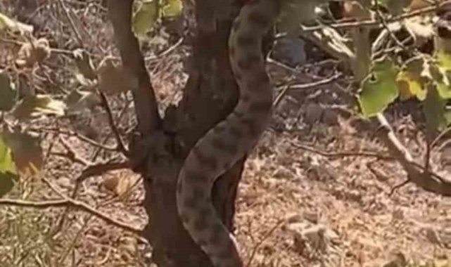 Mardin'de engerek yılanı ağaca tırmanırken görüntülendi