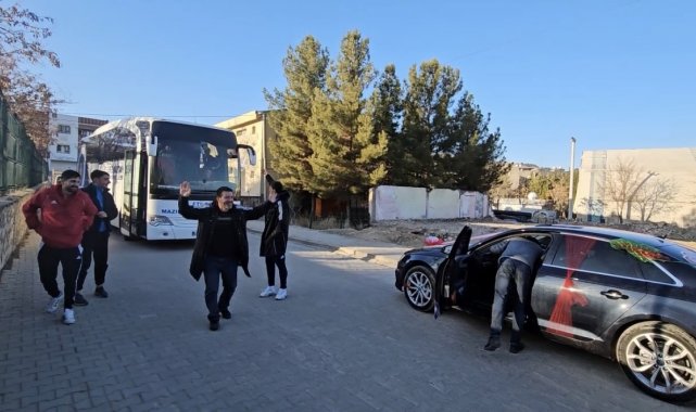 Mardin'de futbolcular, gelin arabasından damadı indirip çiftetelli oynadı