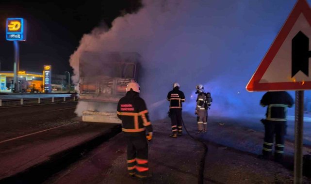 Mardin'de hayvan yemi yüklü tırın dorsesinde yangın çıktı