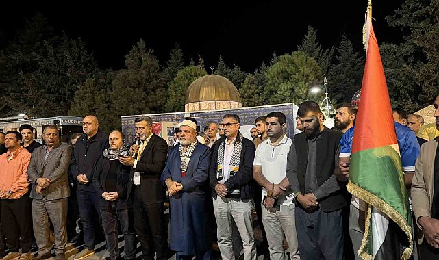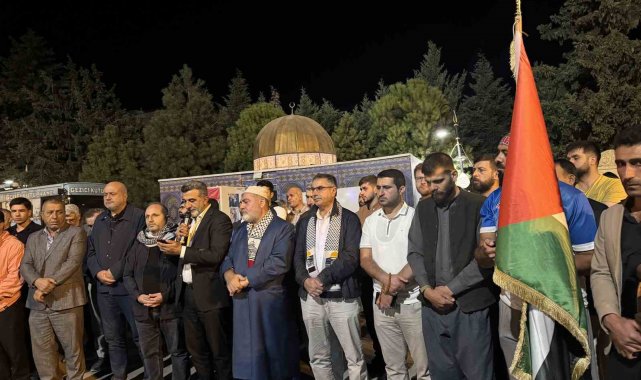 Artuklu ilçesindeki 15 Temmuz Demokrasi ve Şehitler Parkı'nda bir araya gelen vatandaşlar ve sivil toplum kuruluşları, İsrail aleyhine sloganlar attı ve tekbir getirdi.