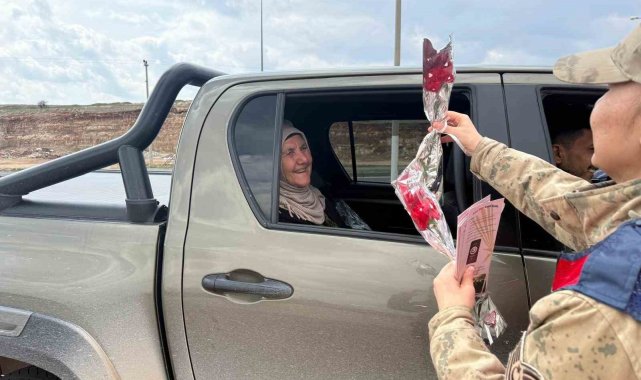 Kadınlar ise kendilerini unutmayarak karanfil hediye eden jandarma ekiplerine teşekkür etti.