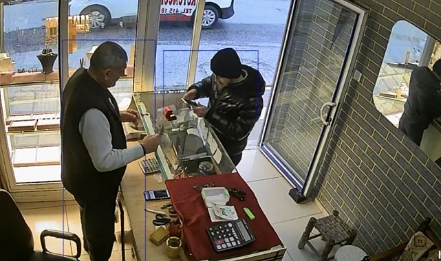 Öte yandan, olay anı güvenlik kamerasına yansıdı. Görüntülerde, şüphelinin yüzüğü aldıktan sonra hızla kaçtığı, iş yeri sahibi Süleyman Can'ın ise peşinden çıkarak yönünü tespit etmeye çalıştığı görüldü.